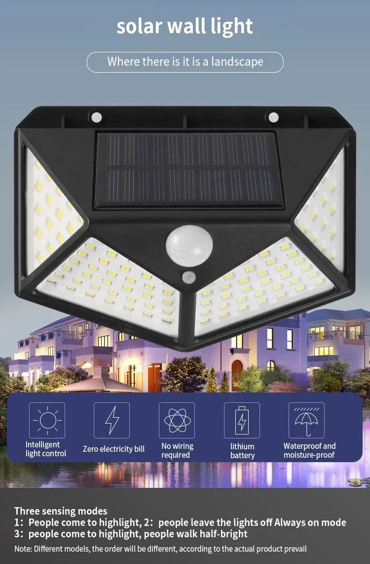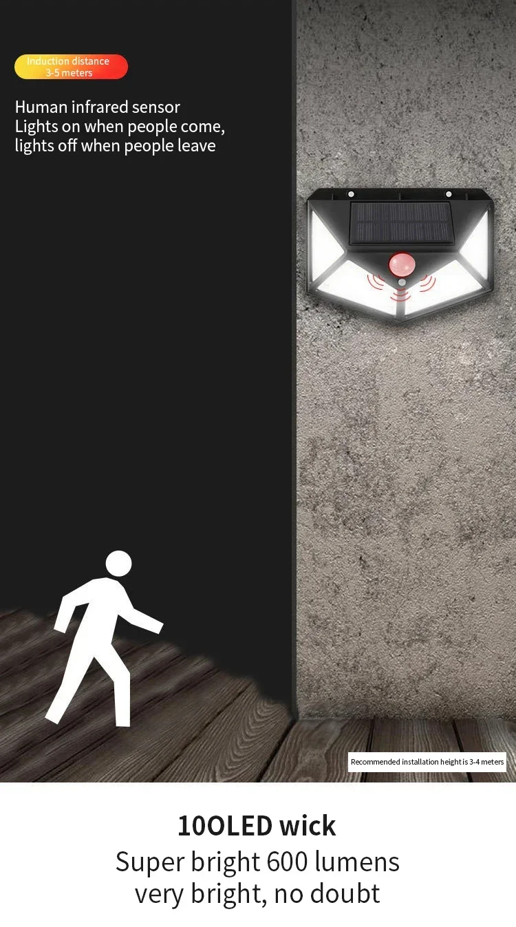 - Light & secure your outdoor space the efficient way with this super bright 100 LED solar motion sensor wall light