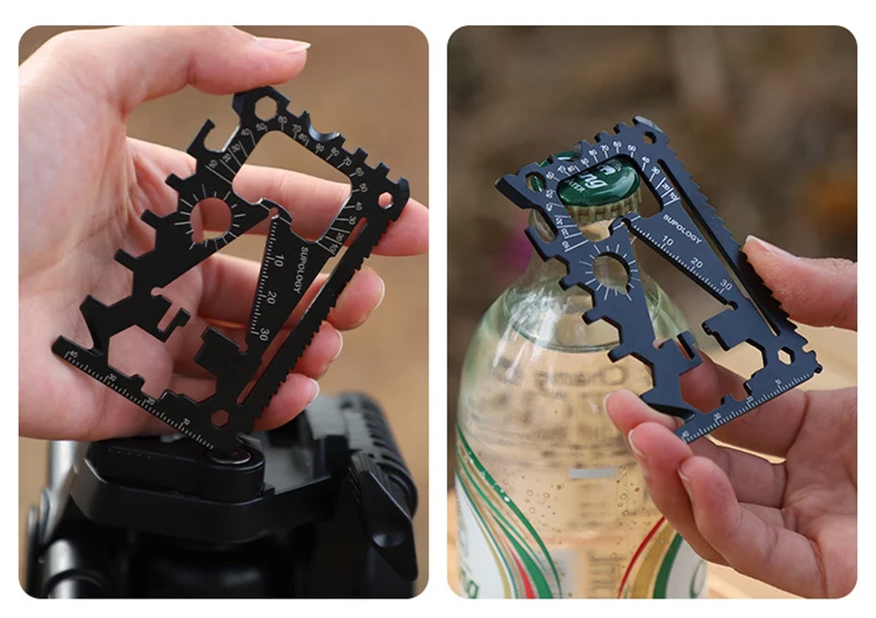 - Epic Wallet Warrior, 18-in-1 steel card crushes fixes from bottle pops to screw tweaks
