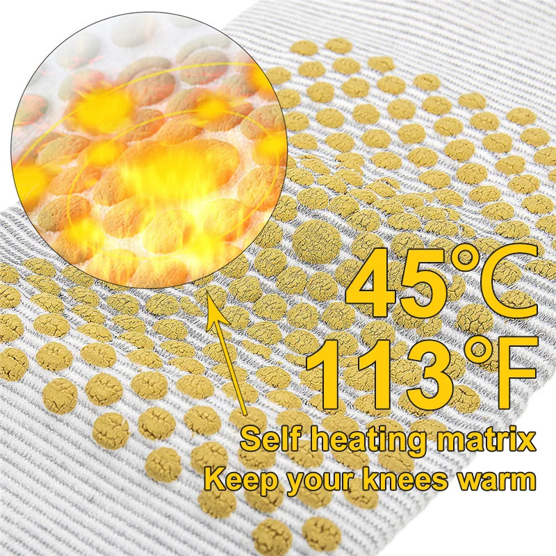 - The self-heating knee pads without power connection provide natural heat to the knee area through magnetic therapy. Provide the best muscle support and comprehensive protection during your exercise and daily leisure activities. Suitable for male and female knees