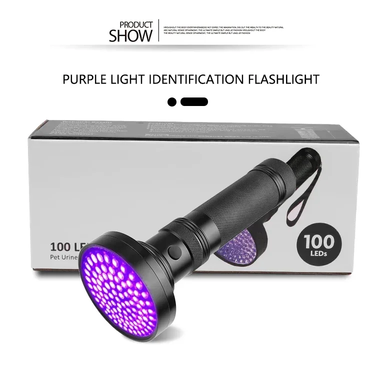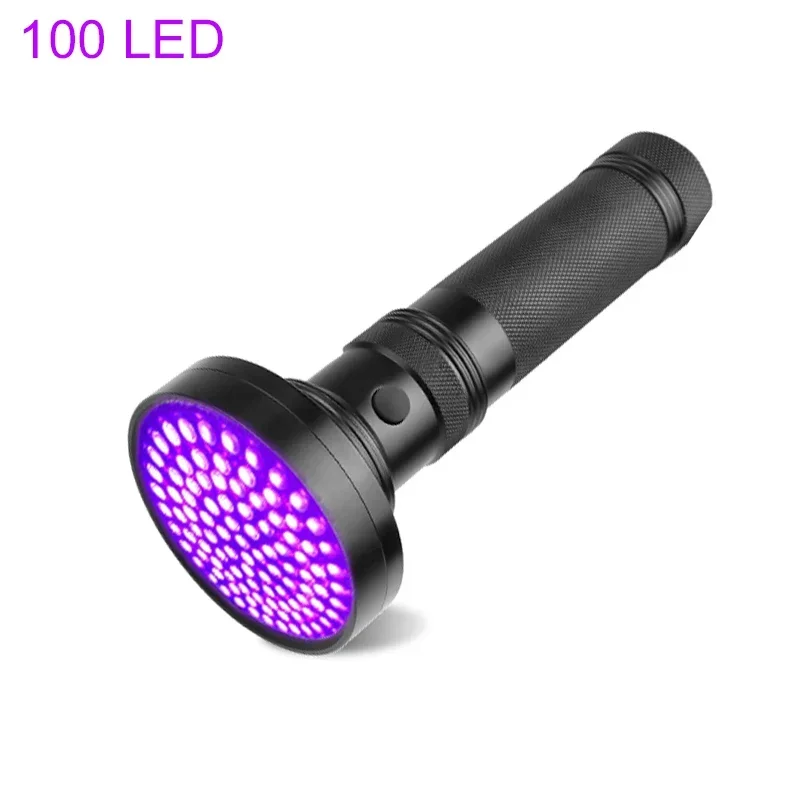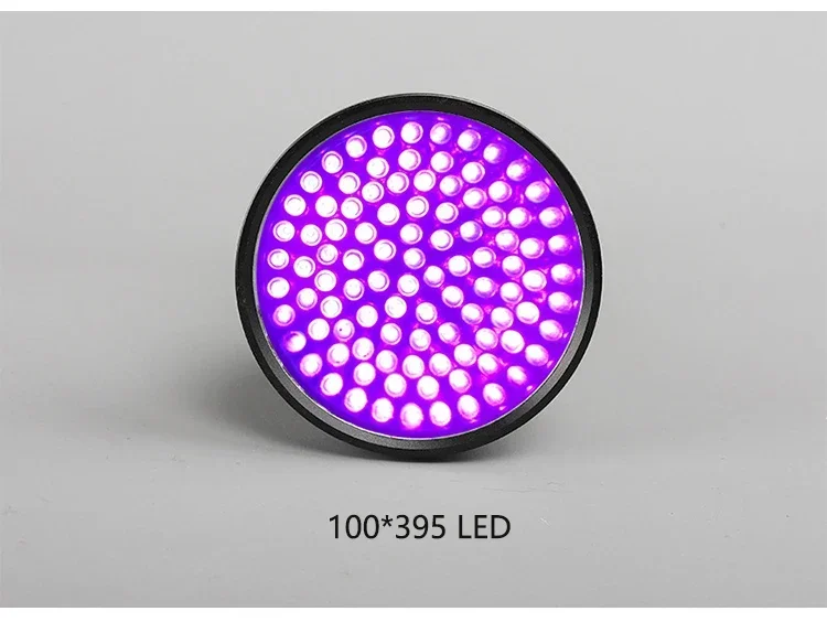 - This is a powerful 100 UV 395LEDs Flashlight that targets a wider lighting area and a wider range of use
