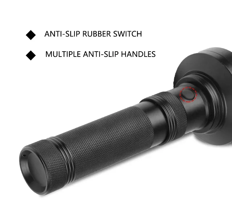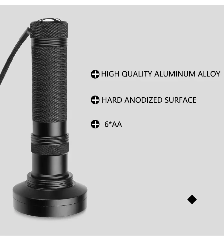- The flashlight’s body is made out of a strong aluminium-alloy body and makes it more durable with IP44 waterproof grade and dustproof protection