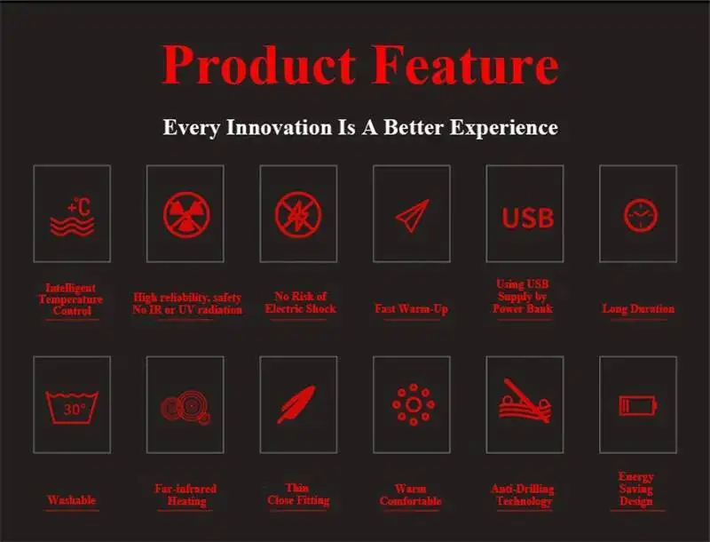 - Outer shell is splash resistant & water, can be worn without the heater function switched on